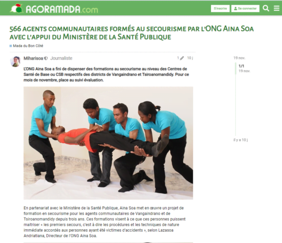 Interview with Laza Andriatiana, director of the NGO AiNA soa on the AGORAMADA website. He spoke about the main activities of the NGO AiNA soa in the district of Vangaidrano and Tsiroanomandidy.